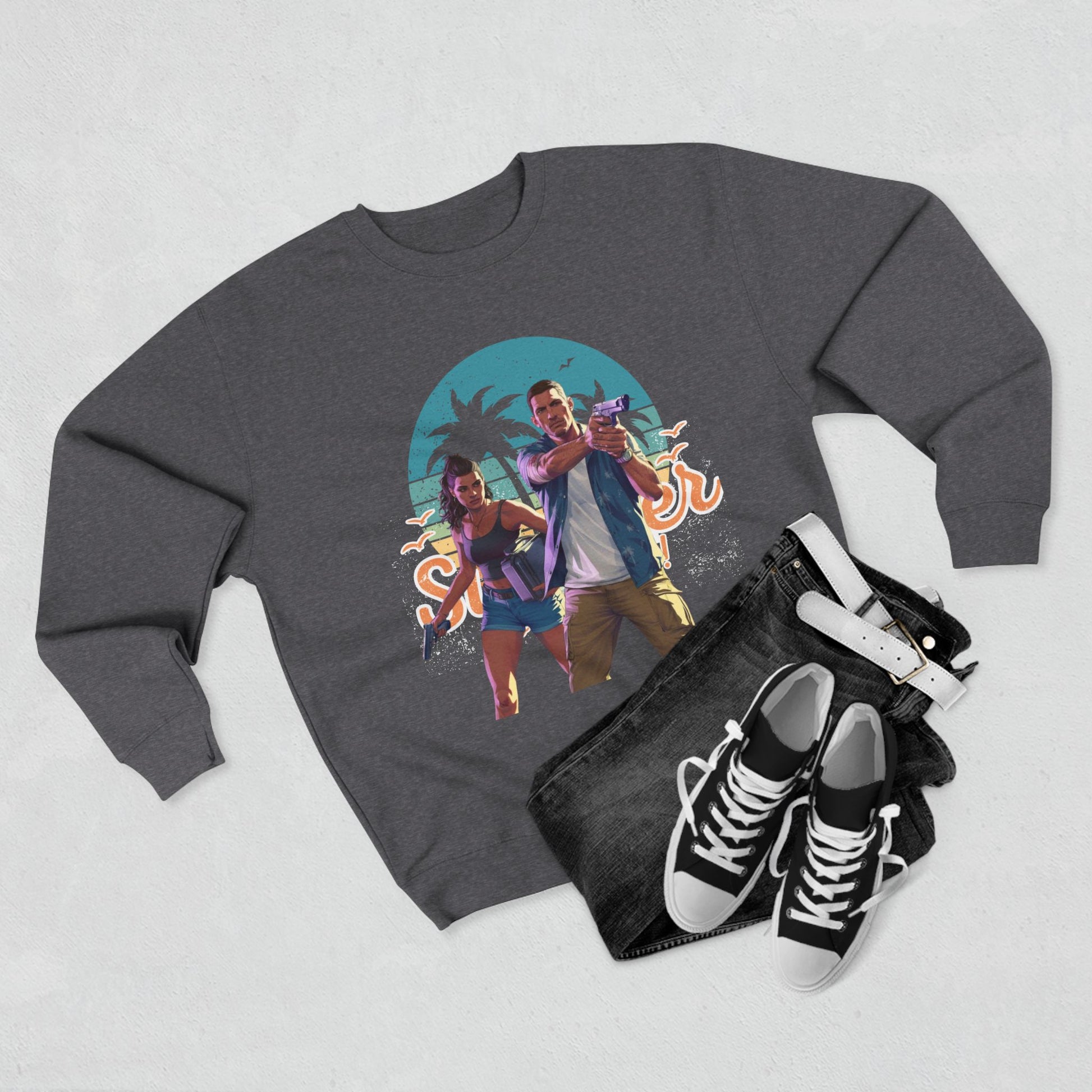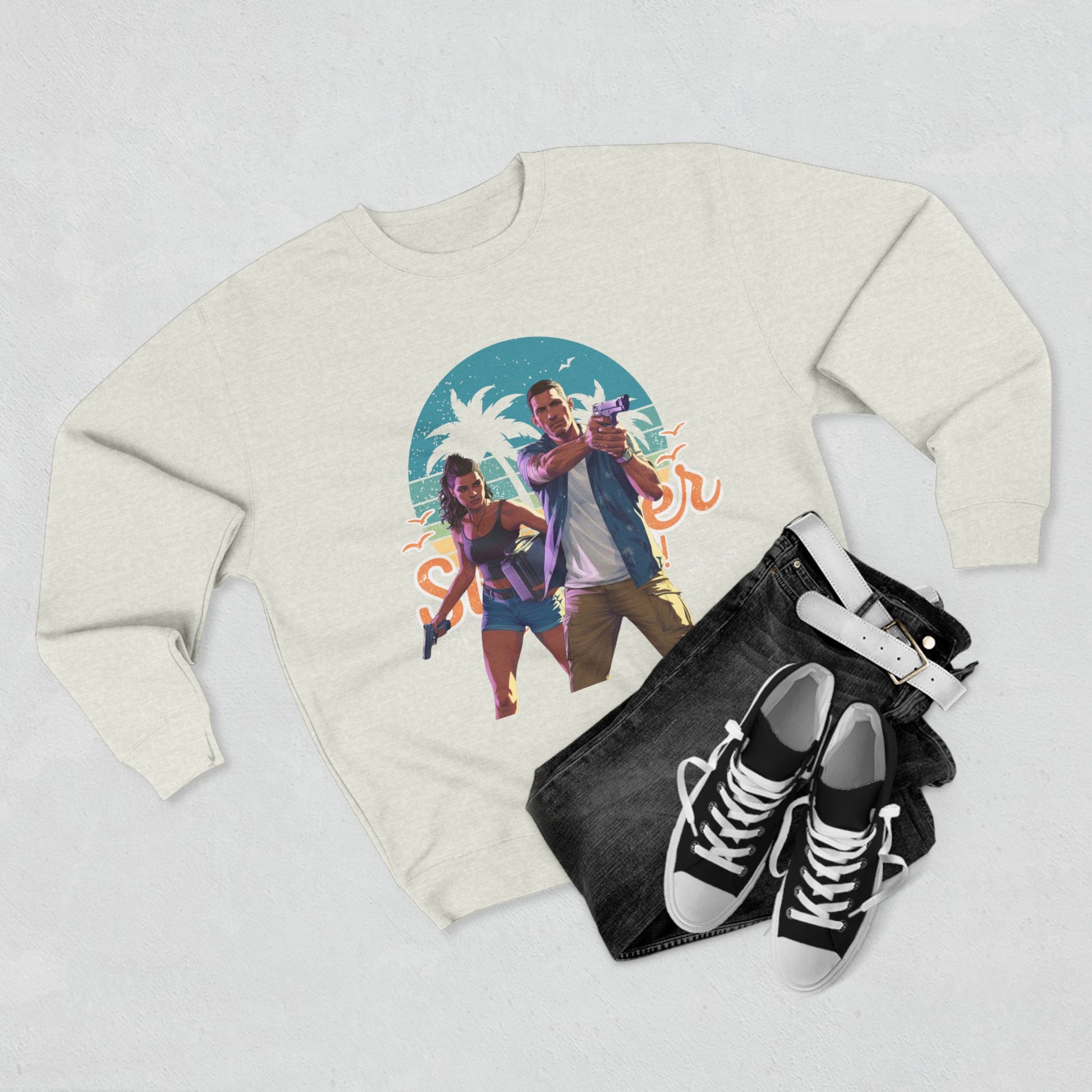 Embrace the laid-back vibes of summer with this stylish Unisex Crewneck Sweatshirt. Perfect for cooler evenings or casual outings, it brings comfort and a touch of fun to your wardrobe. The vibrant design captures the essence of sunny days, making it ideal for those who love to express their personality through fashion. Whether you're lounging at home, heading to a beach party, or enjoying a summer festival, this sweatshirt will keep you cozy and chic. It’s a fantastic gift for friends celebrating birthdays, summer holidays, or just because! Show off your unique style and enjoy the warm atmosphere it brings to any occasion.